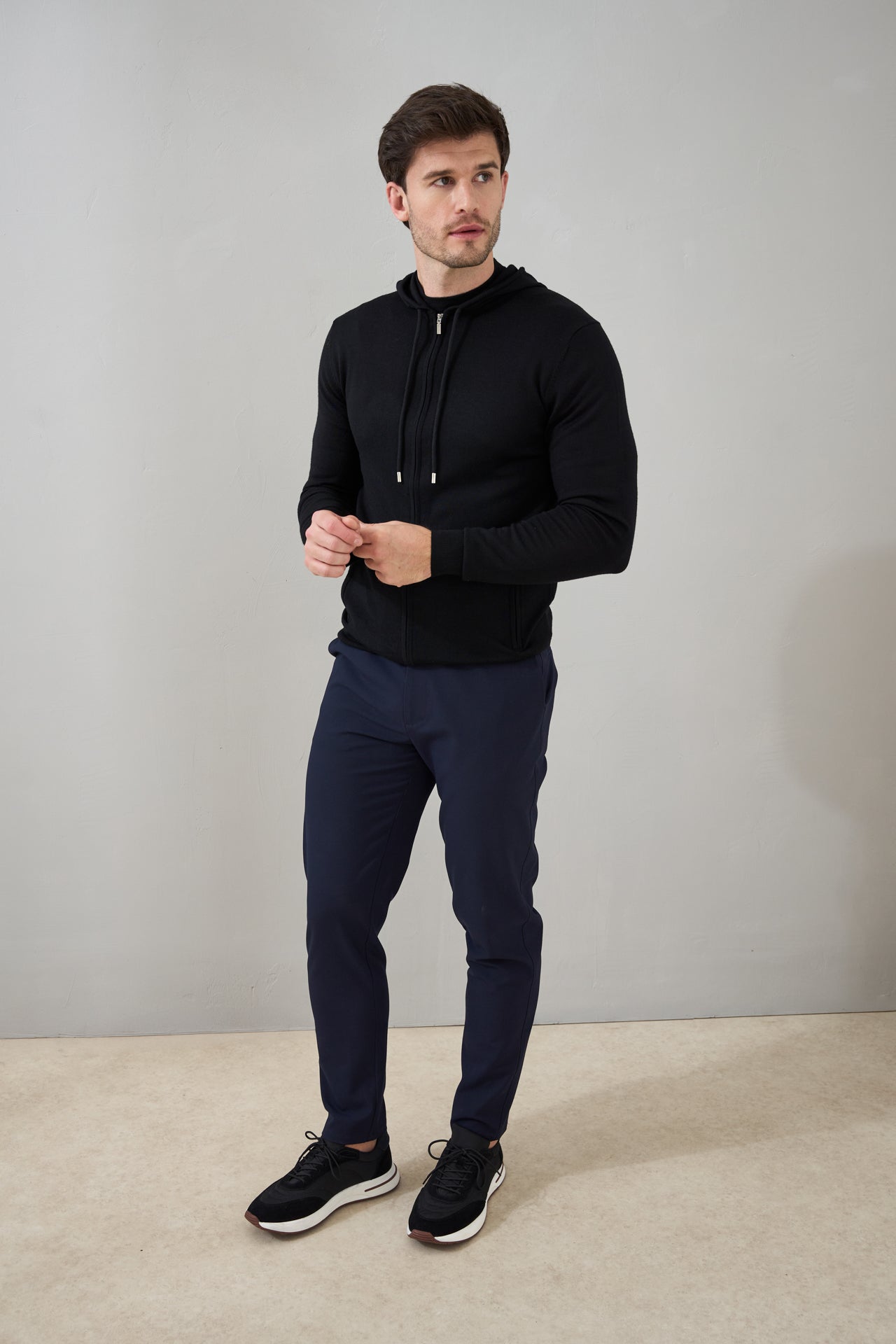 'Ravenna' Extra Fine Merino Zip Hoodie in Black