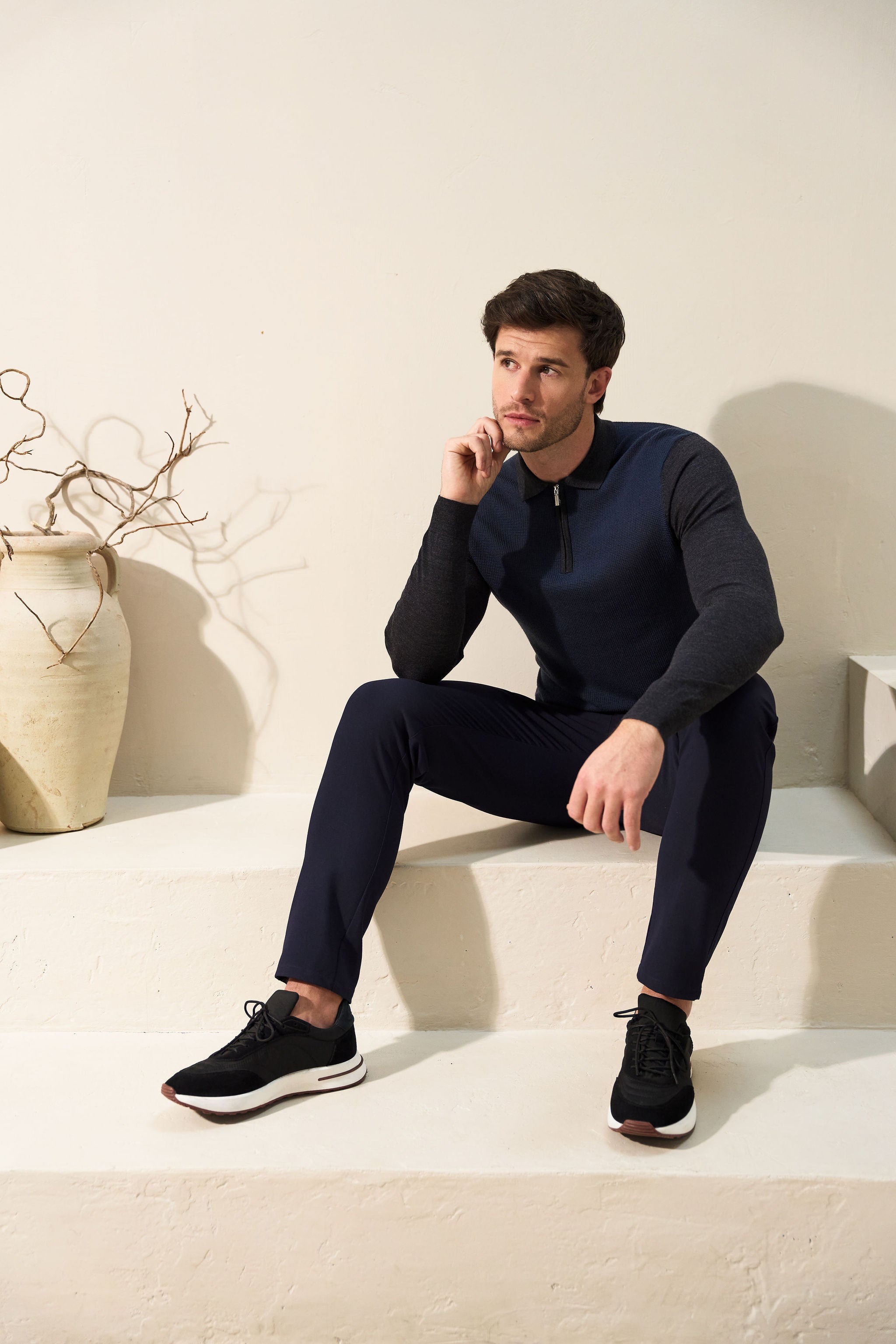 Micro Stitch 'Pazzano' Polo in Charcoal/Midnight Blue